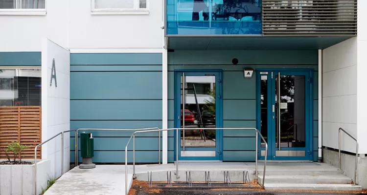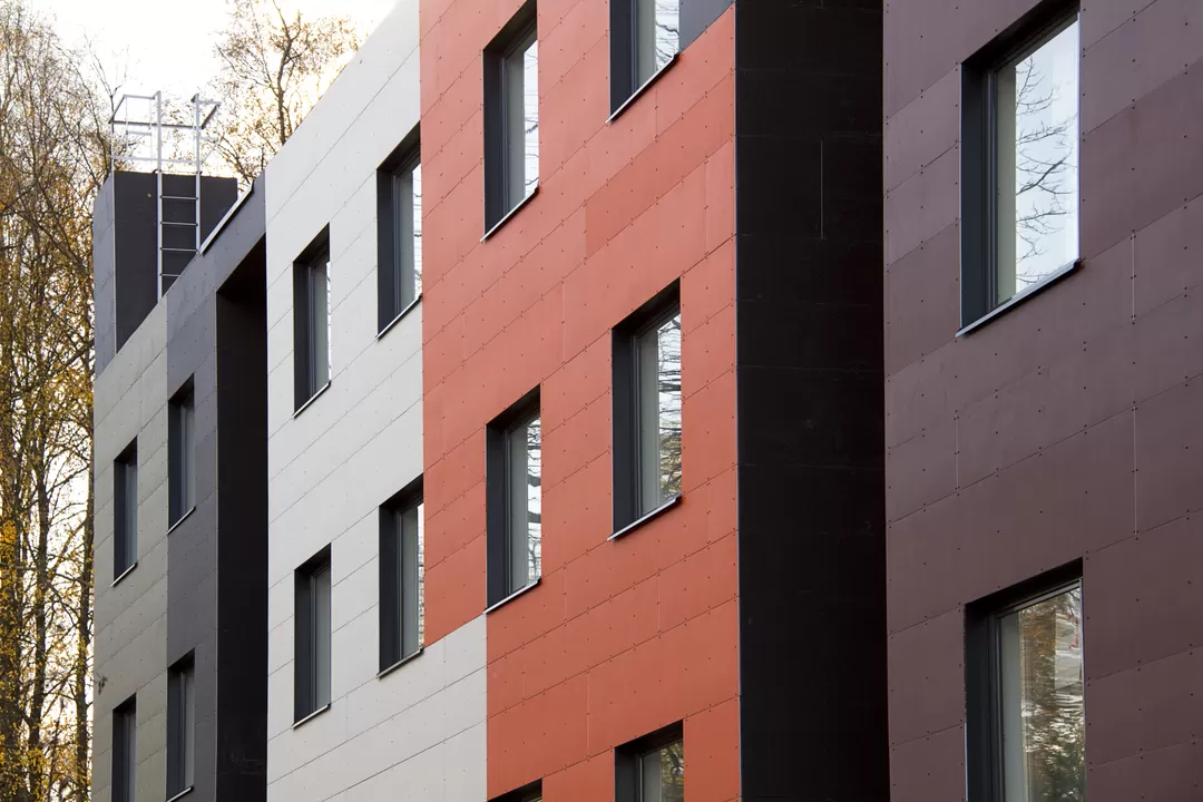 Za spoljašnje oblaganje, kompakt ploče za fasadu (često u formi ventilisanih fasada) pružaju vrhunsku zaštitu od spoljnih uticaja – UV zračenja, padavina, temperaturnih oscilacija.